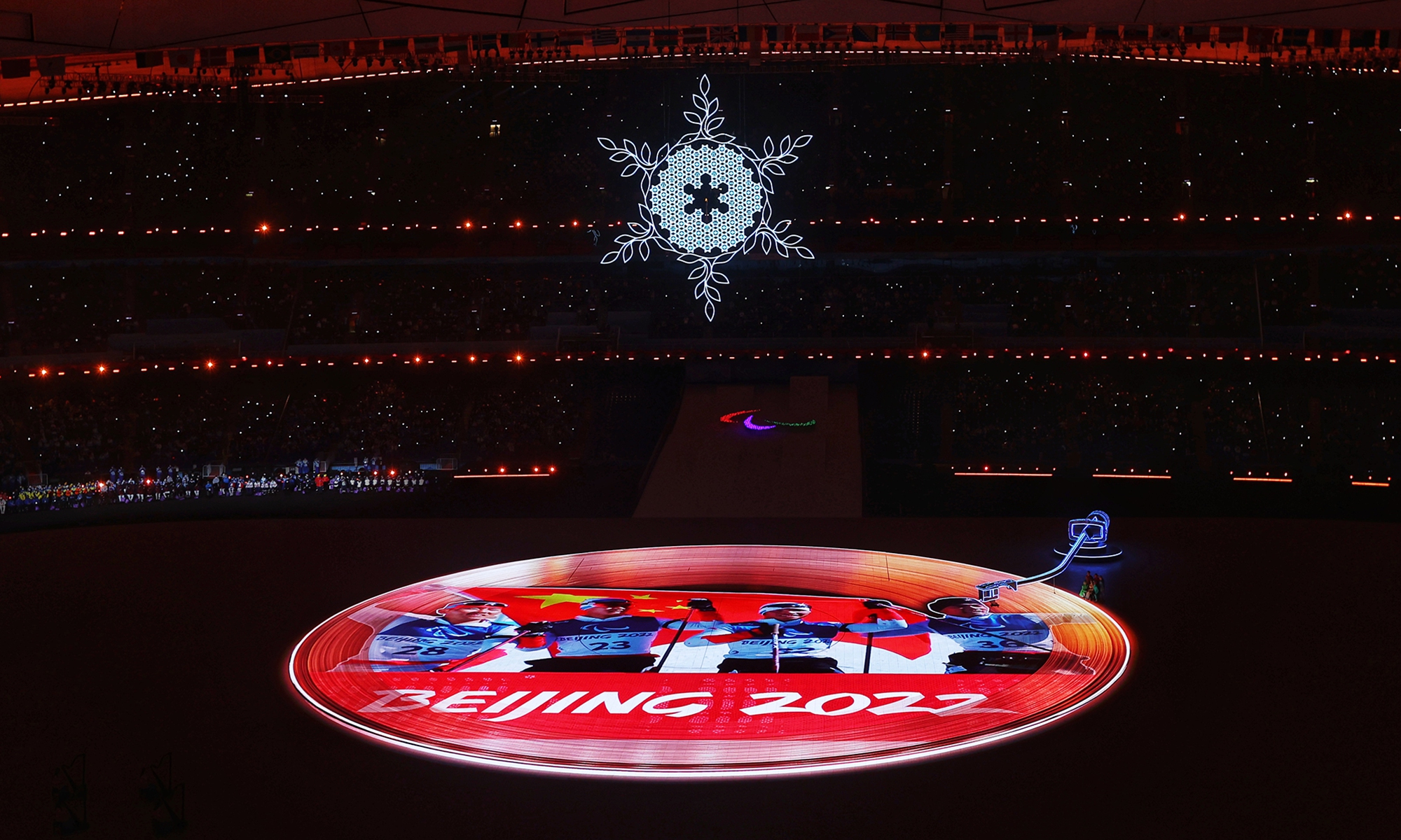 Photo taken on March 13, 2022 shows a scene of the performance during the closing ceremony of the Beijing 2022 Paralympic Winter Games at the National Stadium in Beijing. Photo: Cui Meng/GTMedals | ||||